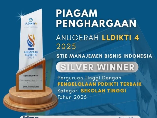 STIE Manajemen Bisnis Indonesia berhasil meraih Silver Winner Anugerah LLDIKTI Wilayah IV Tahun 2025! Prestasi ini menjadi bukti nyata komitmen kami dalam meningkatkan mutu, inovasi, dan kualitas pendidikan tinggi. Terima kasih kepada seluruh civitas akademika atas kerja...